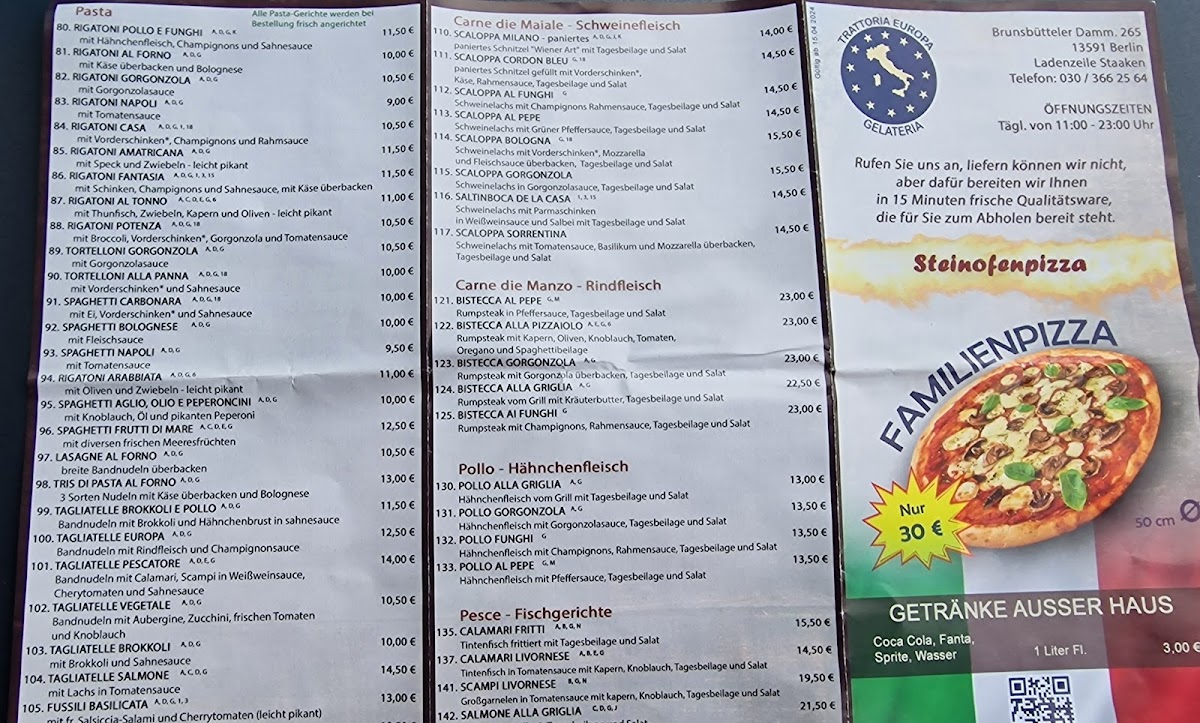 Looking for a taste of Italy right in the heart of Berlin? The Trattoria Europa Menu offers a delightful mix of traditional and contemporary Italian flavors that will make you feel like you're dining in a cozy corner of Rome. From freshly made pasta to wood-fired pizzas, every dish is crafted with the finest ingredients, bringing you an authentic experience with every bite.